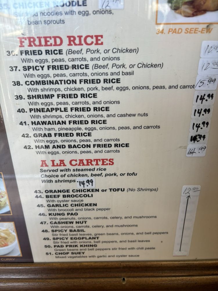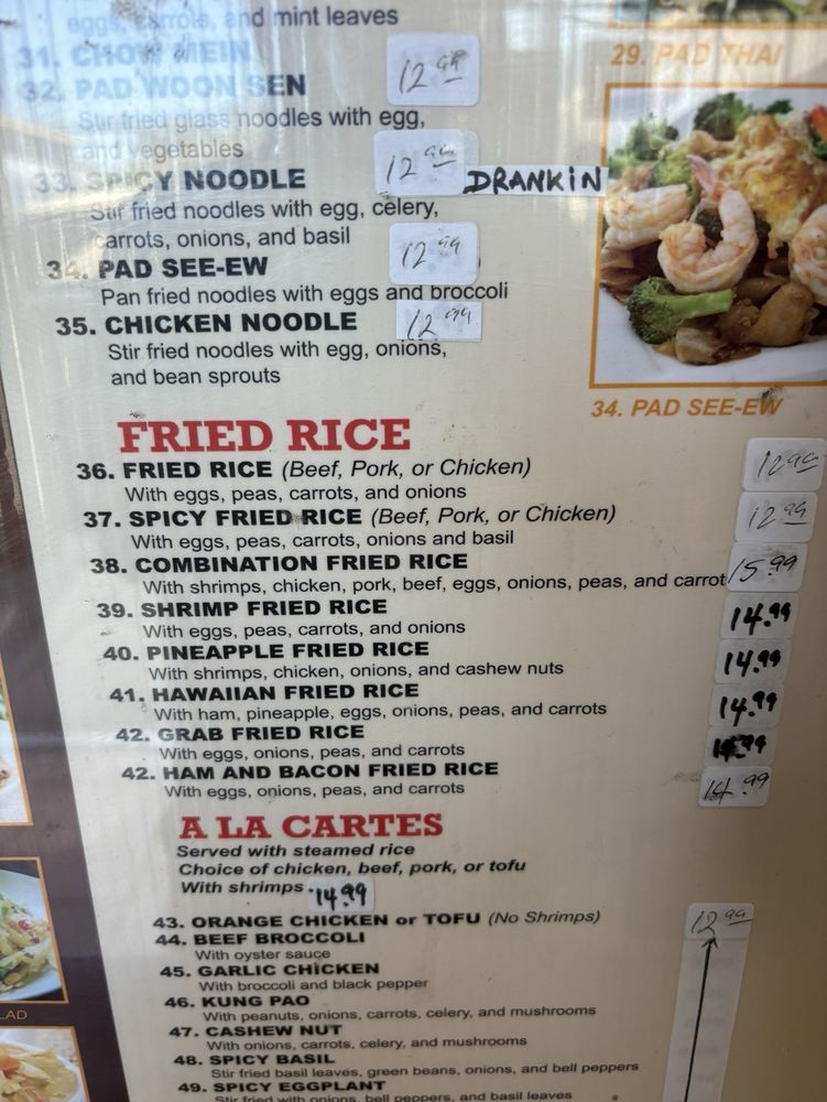 Pan fried noodles with eggs and broccoli. Served with pork, beef, chicken, tofu with egg, or no egg.