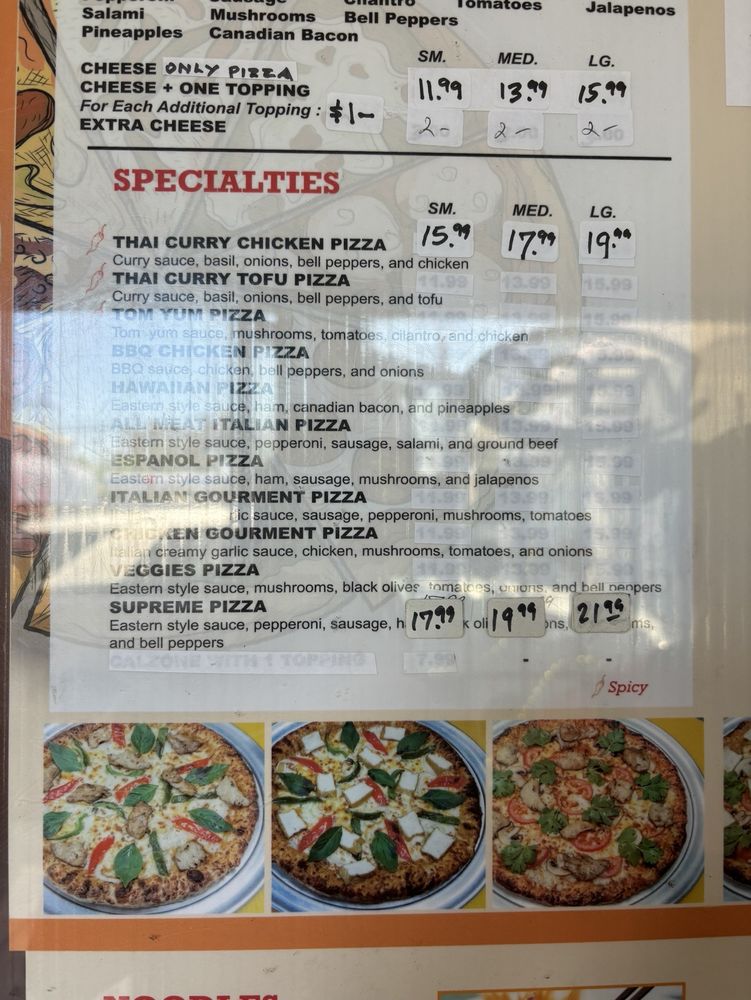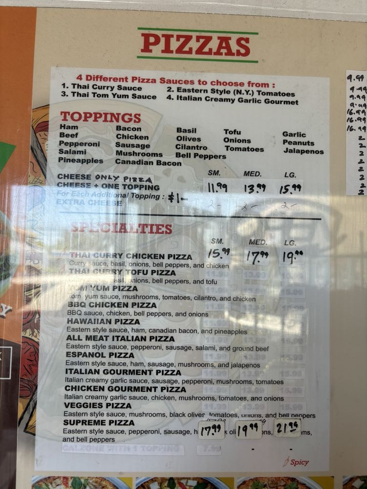 Introducing "Thai Curry Pizza" at 929 Redondo Ave Long Beach, CA offering a unique fusion of Thai flavors on pizzas. The menu features Tom Yum Tofu Pizza, Tom Yum Shrimp Pizza, Thai Curry Chicken Pizza, BBQ Chicken Pizza, Hawaiian Pizza, and more. Customers rave about the authentic Thai flavors and quality of the pizzas, with options for vegetarians and meat lovers alike. The small but cozy dining space with indoor seating adds to the charm of this family-owned establishment. Whether you're craving a slice of Thai Curry Chicken Pizza or exploring the bold flavors of Tom Yum Tofu Pizza, Thai Curry Pizza promises a delightful culinary experience. Don't miss out on this hidden gem for a taste of Thailand on your next pizza night.